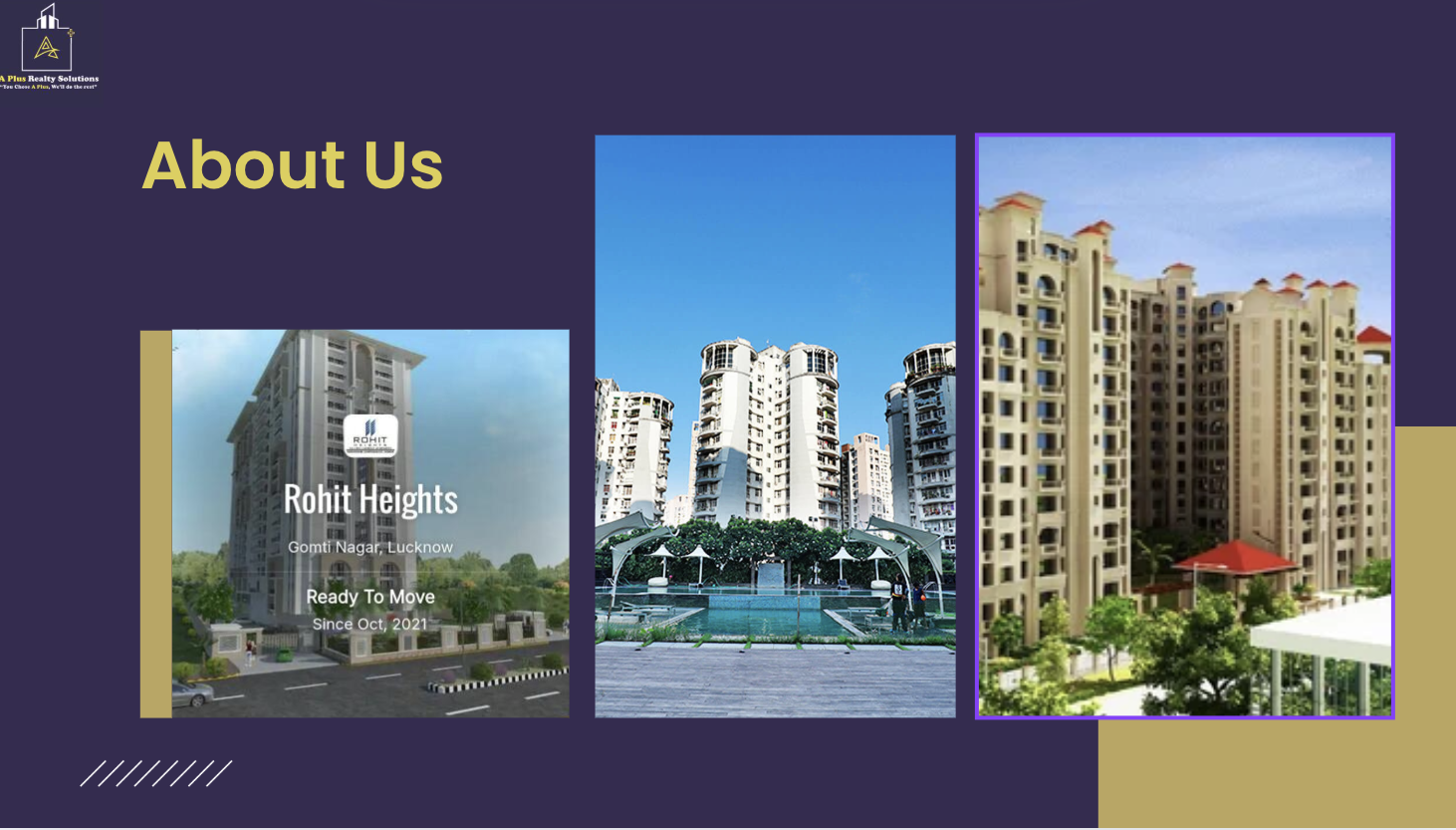 Founded in 2024 by Alok Kumar Tiwari, Rudrendra Singh, and Yati Sharma, A Plus Realty Solutions has quickly grown into one of Lucknow’s most trusted names in real estate consulting. With a passion for excellence and a commitment to integrity, we specialize in connecting people with the best residential and commercial properties tailored to their needs.
